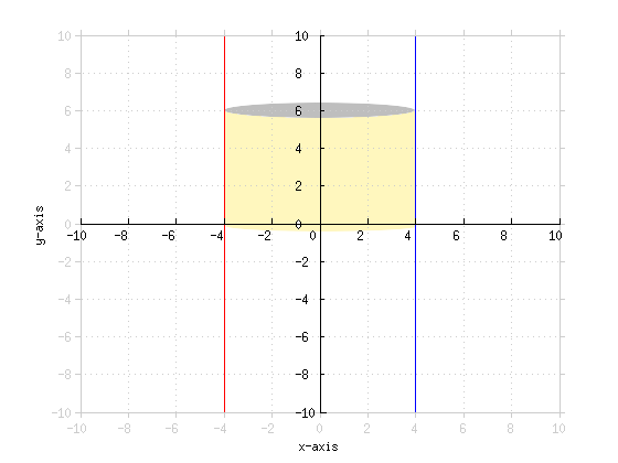 Hi. I worked example three by converting the graph and co-ordinates into x values and then subtracting the area under the curve from the total disc volume. Is this a valid method? The answer was the same.