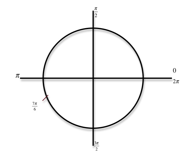 Timothy, 7pi/6 is on the unit circle. In order to solve your problem you have to evaluate sin 7pi/6 first. Then evaluate inverse cosine of that: