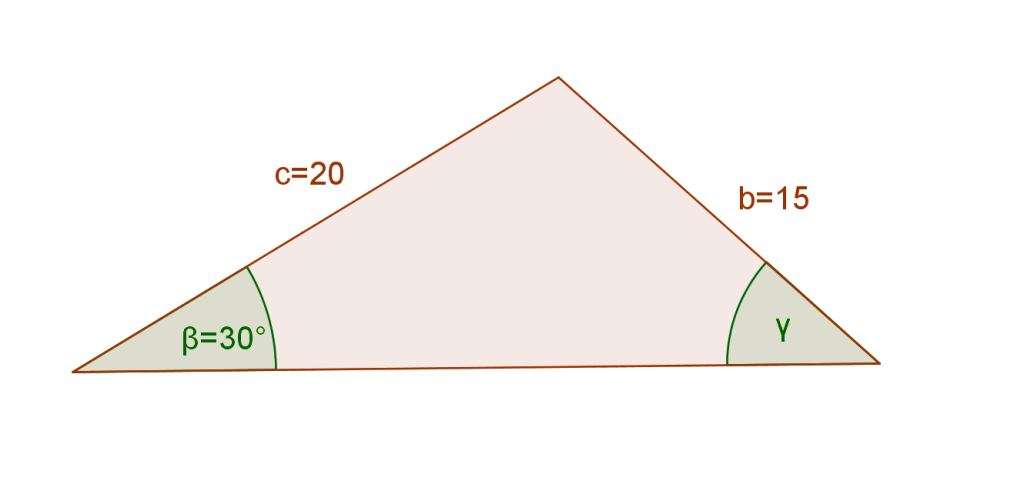 [latex latex size=”3″]\frac{sin30^\circ}{15}=\frac{sin\gamma}{20}[/latex]