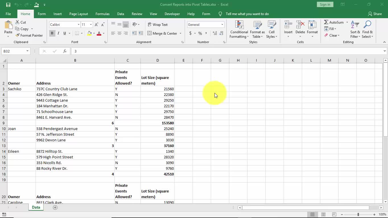 Convert Reports into Pivot Tables
