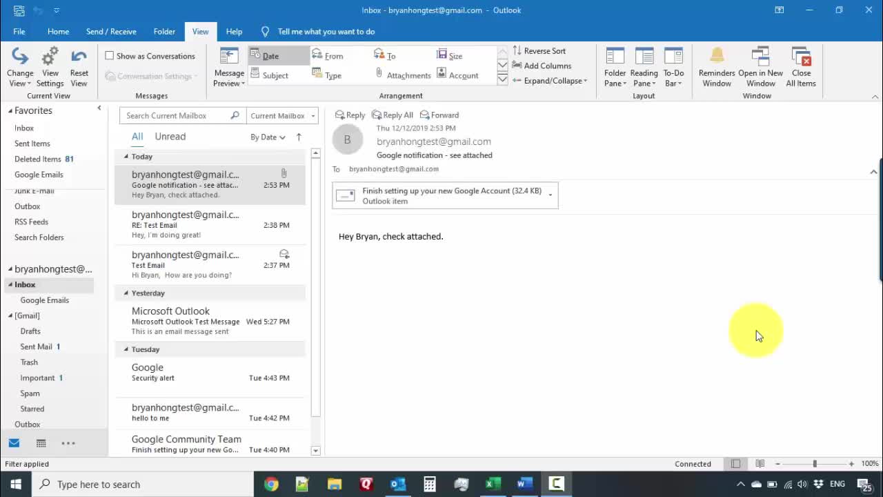 The View Tab in Outlook