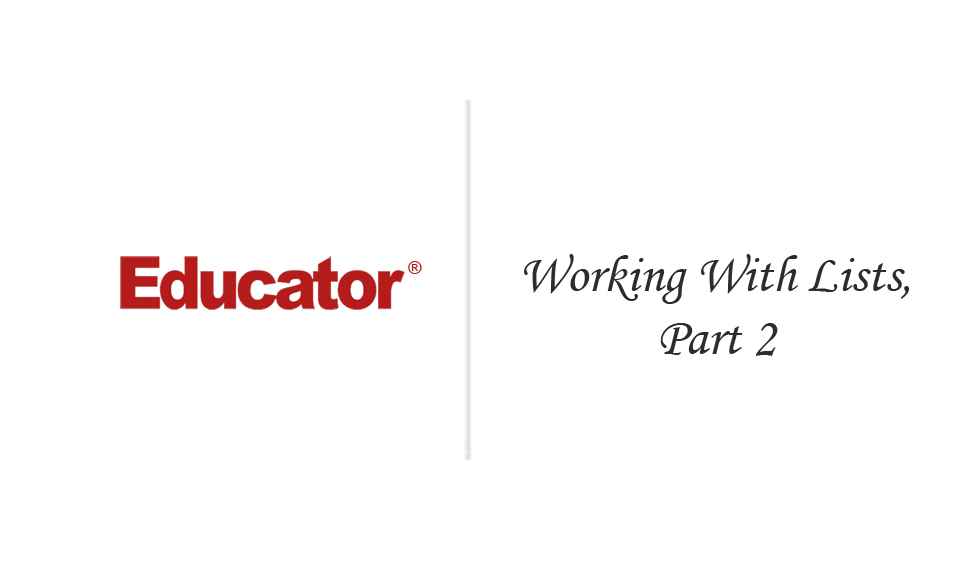 Working With Lists, Part 2